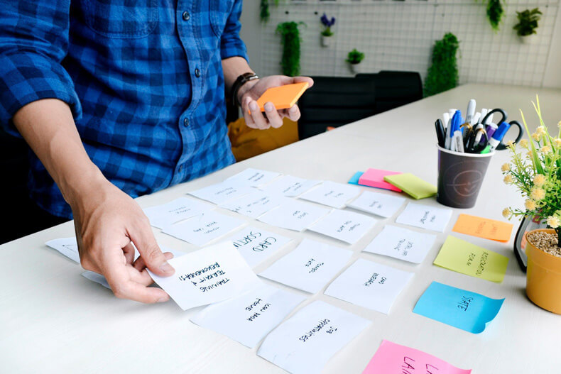بگذارید کمی بیشتر و عمیق تر در خصوص روش مرتب سازی کارت ها صحبت کنیم. فرض کنید می خواهیم فرایند سفارش محصولات یک فروشگاه توسط کاربران را طراحی کنیم. برای این کار فرایند هایی که کاربر باید انجام دهد یا صفحاتی که کاربر برای رسیدن به هدف خود باید طی کند را روی کاغذهای چسبان می نویسیم و از کاربر میخواهیم خود را در حال انجام یک فرایند (مثلا خرید از فروشگاه اینترنتی X) تصور کند و کارت ها را به همان ترتیبی که انتظار دارد مرتب کند و کنار هم بچیند.